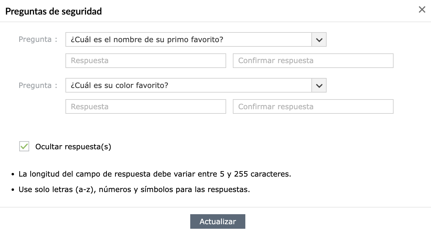 Modificar Preguntas de Seguridad #