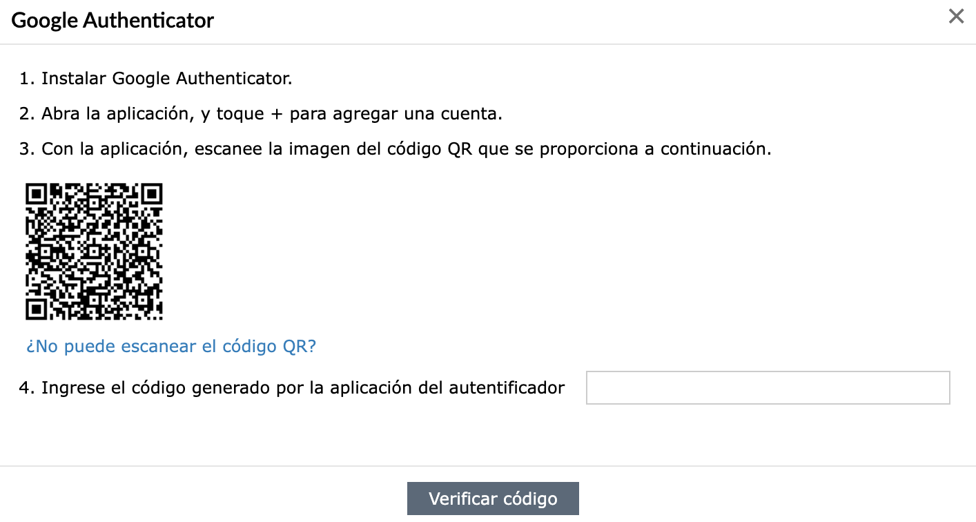 Recuerde que debe instalar primero la herramienta “Google Authenticator” desde la App Store o Play Store, según corresponda a su dispositivo.