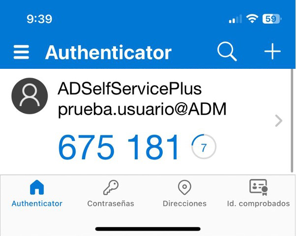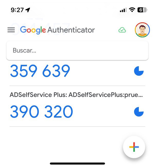 En la aplicación de Google Authenticator deberá presionar el botón “+” y escanear el código QR presente en la herramienta ADSelfservice; una vez realicé este proceso con éxito, el código se hará visible dentro de la herramienta como se ve en la imagen a continuación.